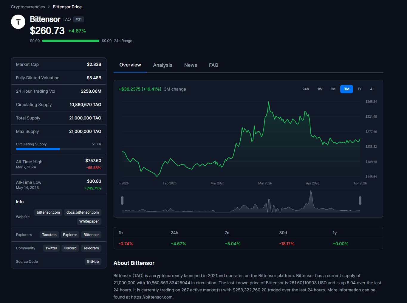 $260. That is where Bittensor is trading today.